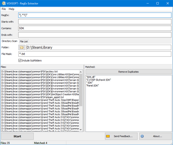 Ce programme est livré avec une interface utilisateur simple qui vous permettra de scanner des dossiers entiers ou des fichiers spécifiques à partir des onglets Analyse de répertoire ou Liste de fichiers, respectivement, ainsi que d'indiquer un masque de fichier si vous le souhaitez. Vous pouvez également définir des règles basées sur des paramètres tels que Commence par, Contient et Se termine par. Une fois que tout est configuré, appuyez sur le bouton Démarrer pour commencer la recherche.